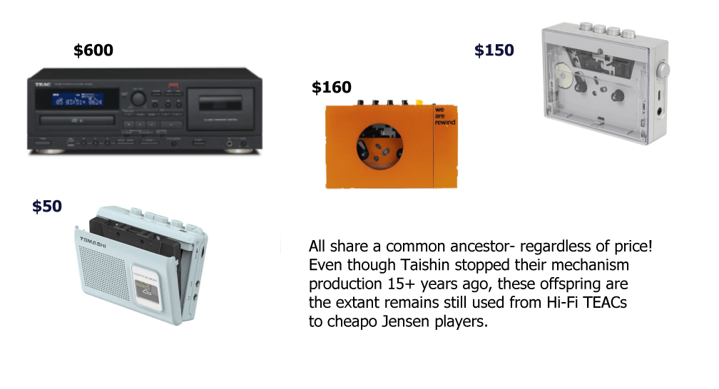 So you’ve decided to get into cassette. There are two player categories, which are decks and portable (walkmans… walkmen?). Think about your use case: are you planning on playing only and bringing tapes with you? A Walkman works. Want to do nice quality recording? A deck with three heads is good. Want to duplicate or switch between 2 tapes automatically? Decks with two slots are common and can be used for this. There are several qualities to keep in mind as standard: